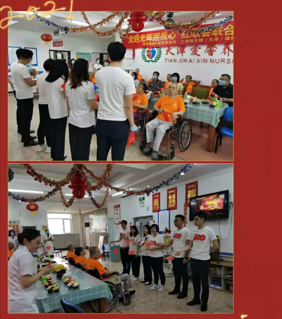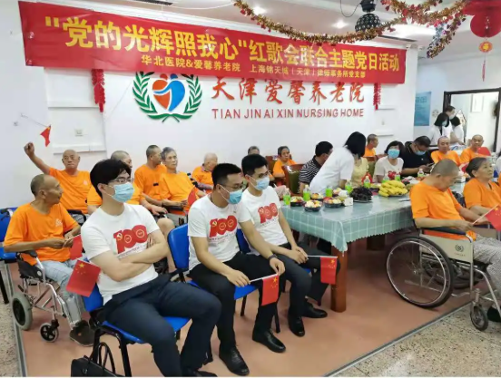 游院长开场致辞,华北医院&爱馨养老院在各级领导和社会各界人士的关怀支持下,听党的话,跟党走,为社会和家庭解决养老和护理难题,不忘初心,牢记使命,努力把医养结合事业做好,为有需要的家庭和老人排忧解难,让社会满意,让政府满意,让百姓满意。今天,我们一起庆祝中国共产党的百年华诞,中国共产党万岁!